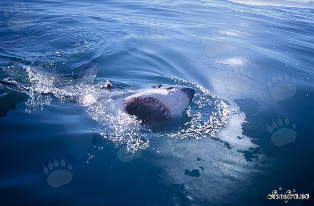 Amazing shot of a Great White Shark breaking through the water surface (00000402)