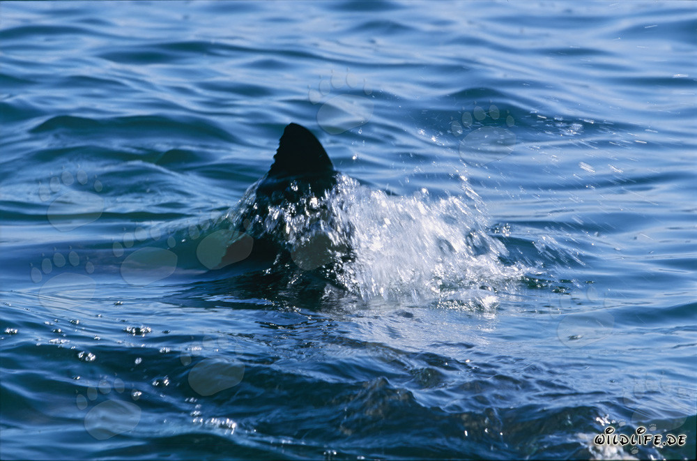 Affascinante Squalo Bianco con la caratteristica pinna dorsale nella Falsa Bay (00015618)