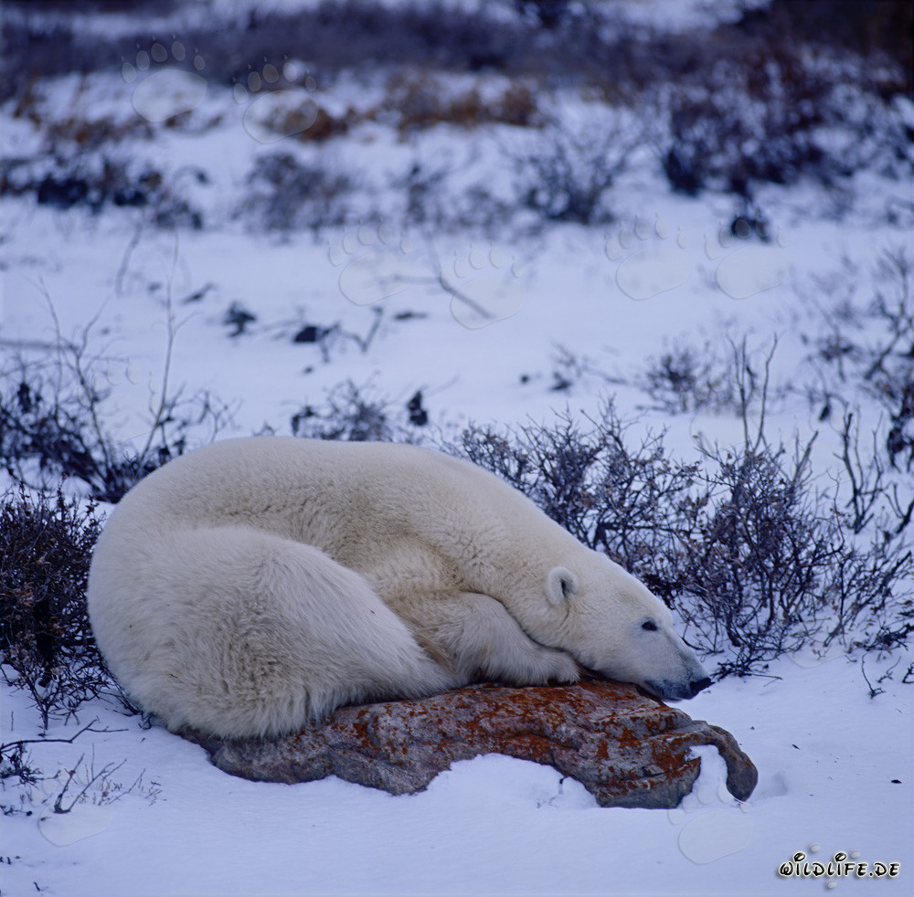 Beschreibung: Der majestätische Eisbär (Ursus maritimus) ruht entspannt auf einem moosbewachsenen Stein in der endlosen Weite der arktischen Tundra. Eisbären sind faszinierende Raubtiere, die bis zu 600 kg wiegen und Längen von bis zu 3,5 m erreichen können. Ihr weißes Fell und ihre dicke Fettschicht schützen sie vor der eisigen Kälte der Arktis. Erfahren Sie mehr über das faszinierende Leben dieser majestätischen Kreaturen und ihre Rolle im Ökosystem der Polarregion.