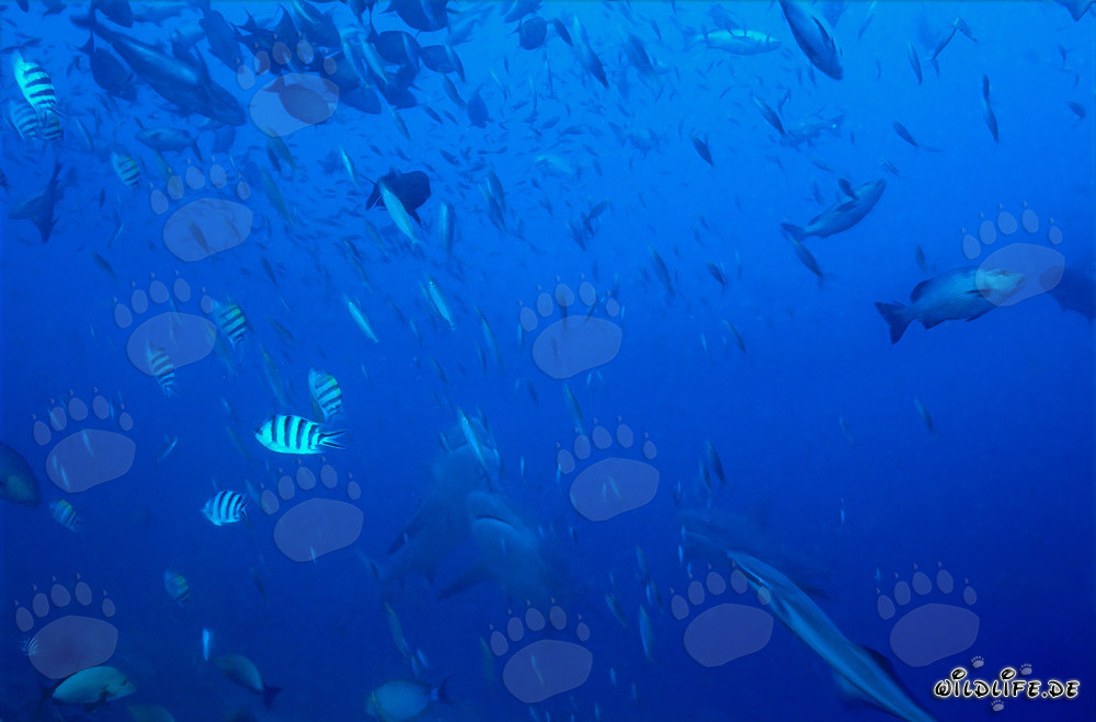 Fotografie von majestätischen Bullenhaien, die im Ozean aufsteigen (00019216)