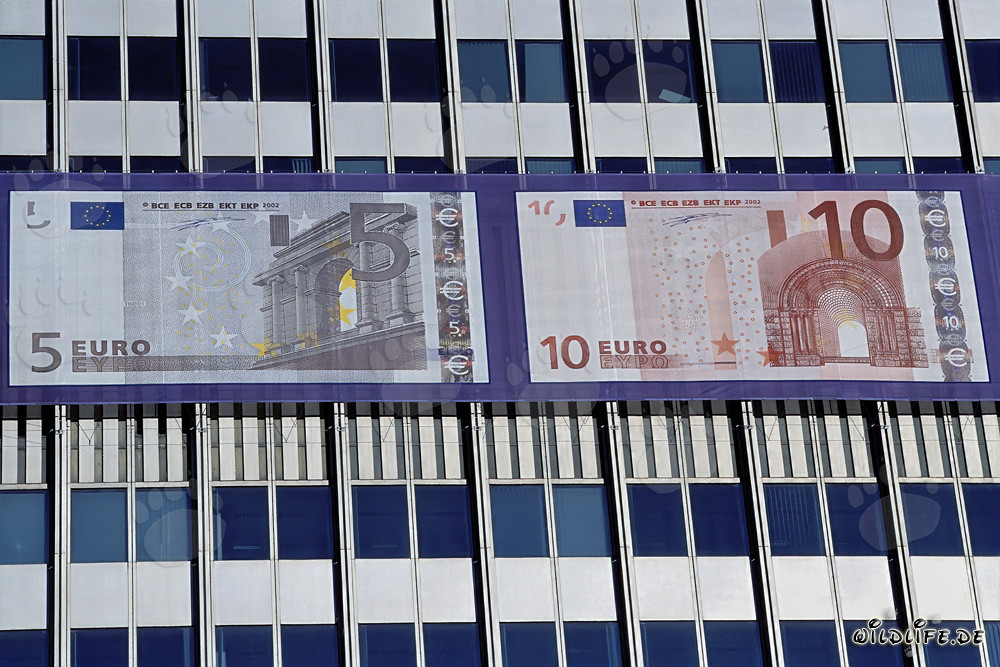 Beschreibung: Der imposante Eurotower beherbergt die Europäische Zentralbank (EZB) in Frankfurt am Main, Deutschland. Mit 45 Stockwerken, 59.000 Quadratmetern Bürofläche und einer Höhe von 148 Metern ist das ehemalige BfG-Hochhaus ein architektonisches Meisterwerk. Der Bau dauerte vier Jahre und wurde 1977 abgeschlossen. Heute arbeiten hier 1100 Menschen in der EZB-Zentrale.