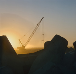 Der Tiefwasserhafen Richards Bay ist eine bedeutende maritime Infrastruktur an der Ostküste der Republik Südafrika, gelegen in der Provinz Natal, etwa 150 km nördlich von Durban. Der Ausbau begann im Jahr 1972 und wurde in einem Zeitraum von fünf Jahren realisiert. Der Großhafen dient vor allem dem Export von Kohle, die im Osten der Provinz Transvaal gewonnen wird. Ursprünglich war die Lagune von Richards Bay eine unberührte Naturstätte, die bis zur Hafenerweiterung als Naturschutzgebiet erhalten wurde. Der 4,5 Kilometer lange Deich und das Flut-Regulierbauwerk sorgen für eine effiziente Wasserstandskontrolle und Schutz vor dem starken Seegang des Indischen Ozeans. Mit zwei großen Kaimauern und umfangreichen Naßbaggerarbeiten wurde der Hafen für Schiffe bis zu 250.000 tdw zugänglich gemacht. Die Bauarbeiten umfassten über 660.000 m³ Beton und 170 Millionen m³ Naßbaggerung, unterstützt durch moderne Schneidkopfspülbagger und Hopperbagger. Der HB Richards Bay ist ein zentrales Element in Südafrikas Exportwirtschaft und ein Meisterwerk der Hafenbaukunst.