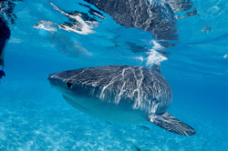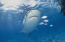 Der Tigerhai (Galeocerdo cuvier) ist eine der faszinierendsten und vielseitigsten Haie der Ozeane. Mit seiner beeindruckenden Größe, die über sechs Meter erreichen kann, und den markanten Streifen auf seinem Rücken, die mit dem Alter verblassen, ist der Tigerhai ein unverwechselbares Raubtier. Diese Riffhaie gehören zur Familie der Grauhai (Carcharhinidae) und zeichnen sich durch ihr breites Maul, ihre kräftige Nase sowie den tonnenförmigen Vorderkörper aus. Sie sind bekannt für ihr breitestes Nahrungsspektrum unter den Haien, das von Meeresschildkröten, Robben, Seelöwen, anderen Haien, Walen und SeeVögeln bis hin zu Wirbellosen, Abfällen und Aas reicht. Diese Anpassungsfähigkeit macht den Tigerhai zu einem erfolgreichen Jäger in verschiedenen Lebensräumen, von Küstenregionen bis hin zu abgelegenen Inselgruppen wie Hawaii, Marshall-Inseln, Galápagos, Tahiti und den Fidschi-Inseln. Trotz ihrer beeindruckenden Präsenz haben erwachsene Tigerhaie keine natürlichen Feinde, abgesehen vom Menschen, der sie durch Überfischung und Habitatverlust bedroht. Der Tigerhai spielt eine entscheidende Rolle in den marinen Ökosystemen, indem er das Gleichgewicht der Populationen anderer Meerestiere aufrechterhält. Sein einzigartiger Kauapparat mit Zähnen, die stark genug sind, um selbst durch das Gehäuse von Seeschildkröten zu beißen, und einem Gebissdruck von bis zu drei Tonnen/cm², macht ihn zu einem der furchterregendsten Raubtiere in den Meeren. Wissenschaftliche Studien haben gezeigt, dass Tigerhaie in tropischen und warm-gemäßigten Meeren weit verbreitet sind und sowohl in flachen als auch in tieferen Gewässern leben. Ihre Wanderungen können beeindruckende Distanzen umfassen, was sie zu einem spannenden Forschungsobjekt für Meeresbiologen macht. Schutzmaßnahmen sind unerlässlich, um die Bestände dieser außergewöhnlichen Haie zu sichern und sicherzustellen, dass zukünftige Generationen die Möglichkeit haben, diese majestätischen Kreaturen in ihrem natürlichen Lebensraum zu erleben. Auf unseren Plattformen finden Sie eine Vielzahl von hochauflösenden Bildern und umfassenden Informationen über den Tigerhai, die Ihnen einen tiefen Einblick in sein Leben und seine Bedeutung für die Meereswelt bieten.