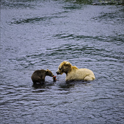 Kodiakbären, wissenschaftlich bekannt als Ursus arctos middendorffi, sind eine beeindruckende Unterart des Braunbären und die größten Landraubtiere der Welt nach den Eisbären. Diese majestätischen Tiere bewohnen die abgelegene und malerische Kodiak-Insel in Alaska, wo das reiche Ökosystem mit seinen zahllosen Lachstrieben und dichten Wäldern ideale Lebensbedingungen bietet. Die Kodiakbären sind für ihre enorme Größe und Stärke bekannt, wobei ausgewachsene Männchen ein Gewicht von bis zu 800 kg erreichen können. Sie sind ausgezeichnete Schwimmer und Kletterer, was ihnen ermöglicht, sich in verschiedenen Terrains zurechtzufinden. Ihre Ernährung ist vielseitig und umfasst sowohl Fisch, insbesondere Lachs, als auch Beeren, Beutetiere und Pflanzenmaterial. Während der Lachszugzeiten verbringen die Bären viel Zeit am Wasser, um sich von den gesundheitlich wertvollen Lachsköpfen zu ernähren. In den ruhigeren Monaten weiten sie ihre Ernährung auf verschiedene Pflanzenarten aus, um ihre Energie zu erhalten. Die Verhaltensweisen der Kodiakbären sind faszinierend zu beobachten, da sie komplexe soziale Interaktionen und territoriales Verhalten zeigen. Schutzmaßnahmen und Naturschutzprojekte sind entscheidend, um diese beeindruckenden Tiere und ihre Lebensräume zu bewahren. Mit ihrer Präsenz tragen die Kodiakbären wesentlich zur biologischen Vielfalt Alaskas bei und sind ein Symbol für die unberührte Wildnis dieser Region. Fotografien von Kodiakbären bieten einzigartige Einblicke in ihr Leben und ihre Umgebung, was sie zu einem wertvollen Bestandteil jeder Sammlung von Natur- und Wildlife-Bildern macht.