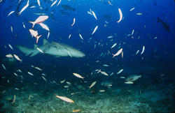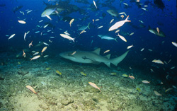 Der Gewöhnliche Ammenhai (Nebrius ferrugineus) ist eine bemerkenswerte Art, die in den klaren Gewässern der Beqa-Lagune in Fidschi beheimatet ist. Mit einer durchschnittlichen Größe von 200 bis 250 cm sind diese Haie beeindruckende Bewohner der Riffökosysteme. Ihre charakteristische braune Grundfarbe ermöglicht es ihnen, sich hervorragend an den Meeresboden anzupassen und sich vor Räubern zu verstecken. Der Gewöhnliche Ammenhai ernährt sich von einer vielfältigen Beute, darunter Krabben, Tintenfische, Korallen, Seeigel und verschiedene Fischarten. Diese Haie sind für ihre Zugänglichkeit bekannt und nähern sich oft Menschen während Tauchgängen, was sie zu beliebten Motiven für Unterwasserfotografie macht. Ihre friedliche Natur und die Bereitschaft, nahe heranzukommen, bieten einzigartige Möglichkeiten für Forschung und Beobachtungen in ihrem natürlichen Lebensraum. Der Schutz dieser Art ist entscheidend, da ihre Lebensräume durch menschliche Aktivitäten und Umweltveränderungen bedroht sind. Die IUCN-Rote Liste klassifiziert den Gewöhnlichen Ammenhai als gefährdete Art, was die Dringlichkeit von Erhaltungsmaßnahmen unterstreicht. Weitere Informationen finden Sie auf der IUCN Red List of Threatened Species. Die Faszination und Schönheit des Gewöhnlichen Ammenhais machen ihn zu einem unverzichtbaren Bestandteil der Meeresbiologie und einem wichtigen Symbol für den Schutz unserer Ozeane.