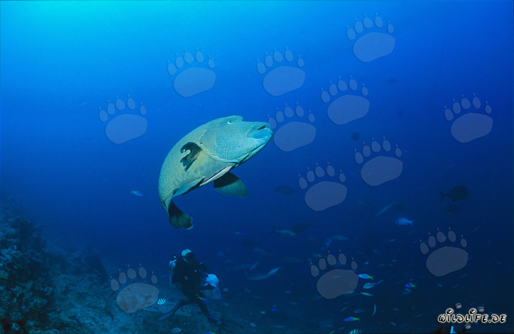 Majestic Napoleon Wrasse Over Shark Reef in Fiji (00017660)