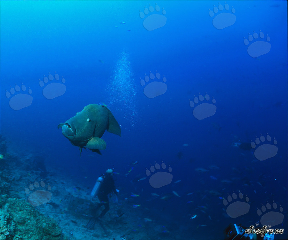 Diver captivated by the Humphead Wrasse in its natural habitat (00017667)