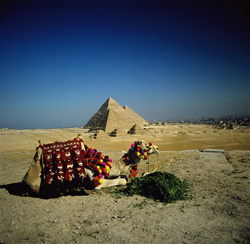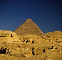 The Pyramids of Giza are one of the seven wonders of the world and one of Egypt's most famous landmarks. The pyramids of Mykerinos, Chephren, and Cheops, along with the Queen's Pyramids, were built during the 4th dynasty and are over 4500 years old. They serve as imposing tombs for the pharaohs and their queens. The magnificent structures rise majestically from the barren landscape of the Egyptian desert, attracting millions of tourists annually who wish to marvel at the impressive heritage of ancient Egyptian civilization. Explore the fascinating history and architecture of these monumental structures, which continue to puzzle and captivate researchers worldwide.