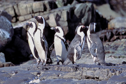 The African Penguins (Spheniscus demersus) are a captivating and endangered species found exclusively along the coasts of South Africa and Namibia. On the picturesque Dyer Island, some of the last remaining populations of these charismatic birds reside. These penguins are distinguished by their distinctive bright eye patches, which give them the name African Penguin. Their habitat is characterized by diverse marine ecosystems that support a rich variety of marine life. The African Penguins are perfectly adapted to life both in and out of the water, yet they face numerous challenges. The primary threats to this species include overfishing of fish stocks, oil pollution from accidents, and regular tanker spills, which severely impact their food sources and habitat. Additionally, climate change poses a significant threat to their habitat, altering fish availability and access to food. Conservation efforts involve strict adherence to conservation agreements such as the Washington Species Protection Agreement, as well as local initiatives aimed at protecting the penguin colonies. On Dyer Island, numerous projects focus on restoring and preserving the natural habitats of the African Penguins. Research institutions collaborate closely with conservation organizations to develop sustainable solutions that ensure the survival of this unique species. Observing the African Penguins provides valuable insights into the complex balance of marine ecosystems and highlights the importance of protecting endangered species. By raising awareness and supporting conservation efforts, everyone can contribute to securing the future of the African Penguins and preserving the biodiversity of South Africa's coastal regions.
