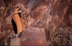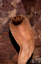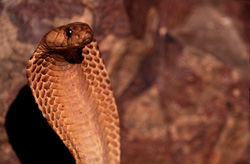 Naja nivea, commonly known as the Cape Cobra, is an impressive species of venomous snakes native to the Overberg Fynbos region of the Western Cape. This toxic serpent can reach lengths of up to 2.1 meters and is characterized by its distinctive scales and large eyes. The Cape Cobra prefers arid, rocky habitats and is renowned for its intimidating defensive display. Despite its dangerous nature, it plays a crucial role in the ecosystem by controlling populations of prey animals such as rodents. The various color morphs, including the Yellow variety and the Speckled variety, make it a fascinating subject for herpetologists and conservationists. Its presence in the pristine Overberg ecosystem serves as an indicator of environmental health. Protecting this vulnerable species is vital to maintaining the region's biodiversity. Photographs of the Cape Cobra provide valuable insights into its behavior and adaptations to the extreme conditions of its habitat. Researchers value the Cape Cobra for its anatomy and toxicology, which may offer opportunities for developing antidotes and medical applications. The Cape Cobra is not only a symbol of African wildlife but also an essential component of the cultural and natural landscape of the Western Cape.