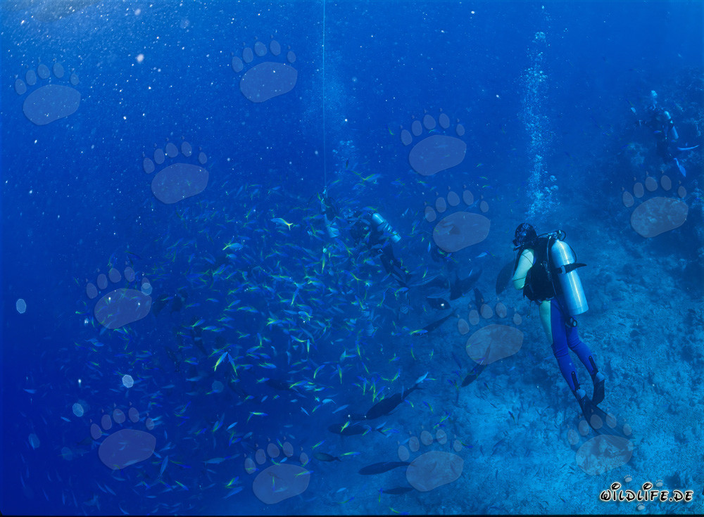 Descripción: Los fusileros azul y oro, conocidos científicamente como Caesio teres, son una especie de pez impresionante que habita en las aguas de la laguna de Beqa en Fiji. Los buceadores tienen la suerte de observar estas hermosas criaturas en grandes cardúmenes, deslizándose elegantemente a través del agua clara. Con una impresionante longitud de hasta 30 cm, pueden encontrarse hasta a 35 metros de profundidad. Una experiencia inolvidable que refleja la belleza del mundo submarino.
