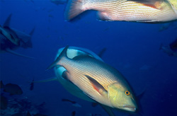 El Mero de Dos Manchas (Lutjanus bohar) es una especie notable dentro de la familia de los meros. Conocido por sus distintivas y prominentes manchas que le dan su nombre, este pez habita las cálidas aguas tropicales de los océanos Índico y Pacífico, comúnmente encontrado en extensos arrecifes de coral y áreas costeras. El Mero de Dos Manchas desempeña un papel crucial en el ecosistema marino como depredador, ayudando a controlar las poblaciones de peces más pequeños e invertebrados. Su adaptabilidad a varios hábitats y su atractiva apariencia lo hacen popular entre buceadores y biólogos marinos. Las prácticas de pesca sostenible son esenciales para proteger las poblaciones de esta importante especie y para mantener la biodiversidad en los entornos marinos. El Mero de Dos Manchas no solo es valioso ecológicamente, sino también económicamente significativo para las industrias pesqueras en las regiones donde se encuentra.