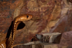 Naja nivea, conocida como la Cobra de Cabo, es una impresionante especie de serpientes venenosas nativa de la región Overberg Fynbos del Cabo Occidental. Esta serpiente tóxica puede alcanzar una longitud de hasta 2,1 metros y se caracteriza por sus distintivas escamas y grandes ojos. La Cobra de Cabo prefiere hábitats áridos y rocosos y es conocida por su imponente comportamiento defensivo. A pesar de su naturaleza peligrosa, desempeña un papel crucial en el ecosistema al controlar las poblaciones de animales presas como roedores. Las diversas variantes de color, incluida la variedad amarilla y la variedad moteada, la convierten en un sujeto fascinante para herpetólogos y conservacionistas. Su presencia en el ecosistema prístino de Overberg sirve como indicador de la salud ambiental. Proteger esta especie vulnerable es vital para mantener la biodiversidad de la región. Las fotografías de la Cobra de Cabo ofrecen valiosas ideas sobre su comportamiento y adaptaciones a las condiciones extremas de su hábitat. Los investigadores valoran la Cobra de Cabo por su anatomía y toxicología, que podrían ofrecer oportunidades para desarrollar antídotos y aplicaciones médicas. La Cobra de Cabo no solo es un símbolo de la vida silvestre africana, sino también un componente esencial del paisaje cultural y natural del Cabo Occidental.