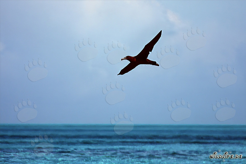 Un albatros à pieds noirs majestueux (Phoebastria nigripes) plane au-dessus de l'océan (00006808)