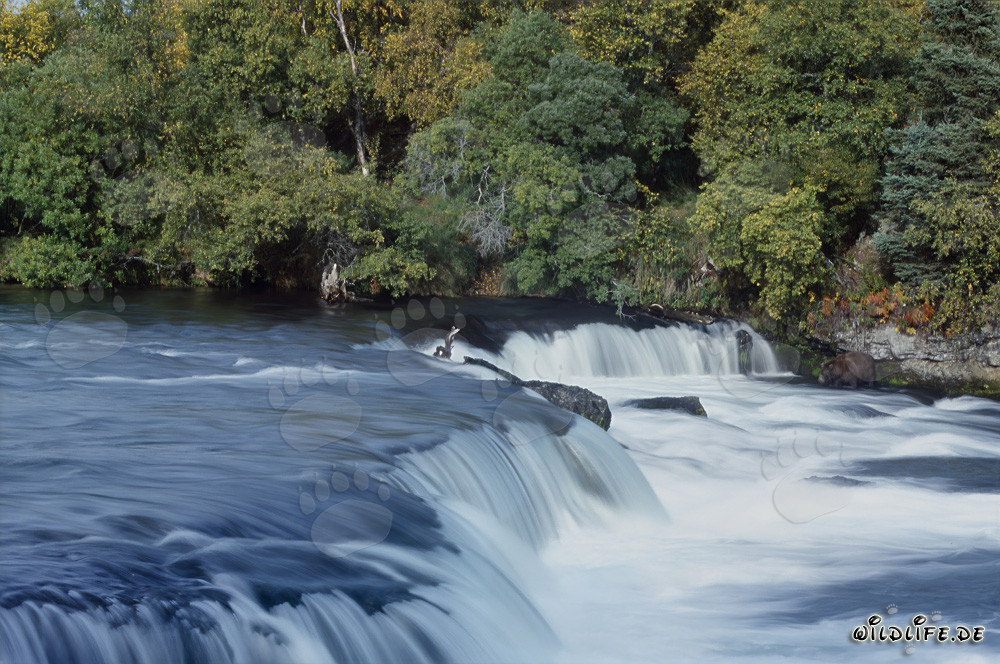 Description: Les chutes de la rivière Brooks à Katmai, en Alaska, sont une cascade pittoresque où les saumons rouges sautent en chemin vers leur frayère. L'eau claire tombe d'environ 1,80 m de hauteur, créant un spectacle naturel impressionnant. La chute d'eau marque le dernier obstacle pour les saumons avant d'atteindre leur destination. Découvrez la beauté et la puissance de la nature en ce lieu unique.