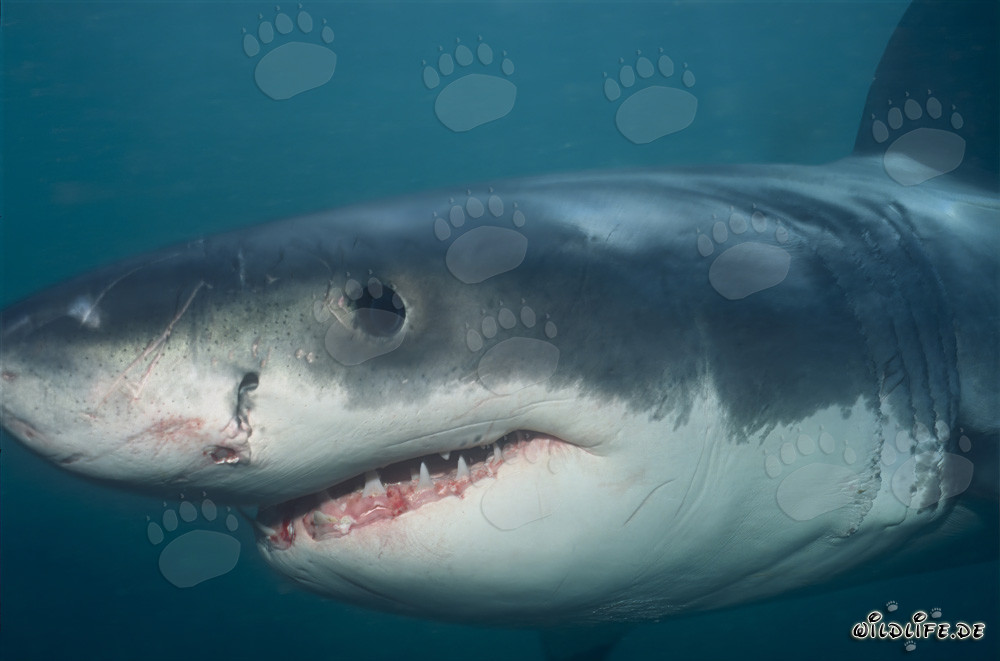 Portrait fascinant d'un bébé requin blanc au large des côtes d'Afrique du Sud (00016488)