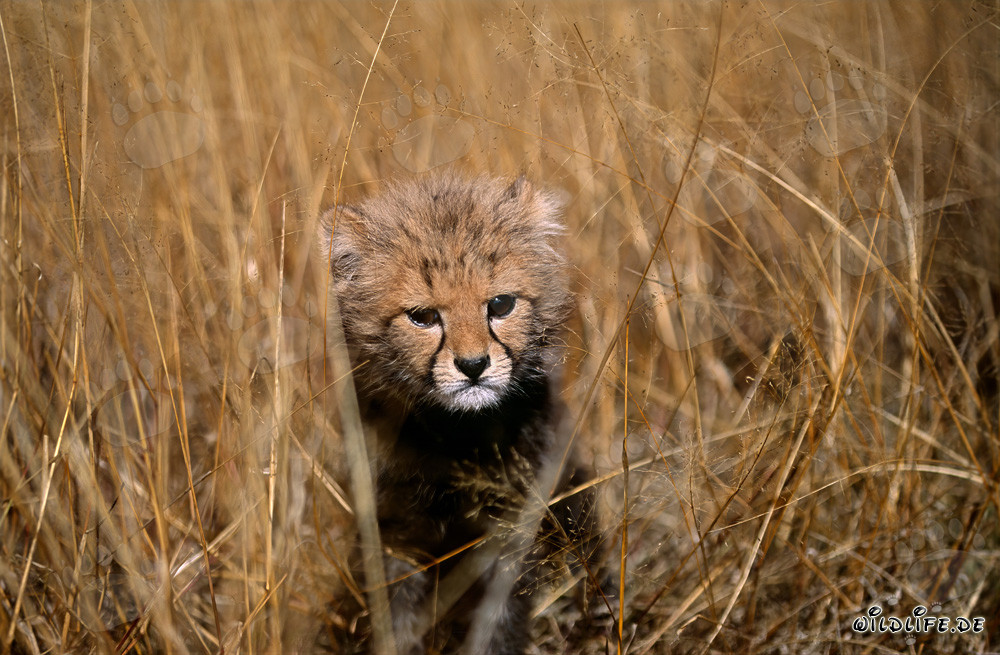 Description: Le guépard (Acinonyx jubatus) est l'un des prédateurs les plus fascinants au monde. Ce jeune et mignon bébé guépard regarde curieusement à travers les hautes herbes. La photo a été prise dans une station d'élevage privée de guépards près du parc des éléphants d'Addo, où les animaux menacés sont protégés et relâchés dans la nature. Les guépards sont les animaux terrestres les plus rapides et peuvent atteindre des vitesses allant jusqu'à 120 km/h. Malheureusement, ils sont fortement menacés en raison de la perte d'habitat, du braconnage et des conflits avec les agriculteurs. Laissez-vous enchanter par la grâce et la beauté de cet animal majestueux.