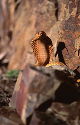 Naja nivea, communément appelée Cobra du Cap, est une espèce impressionnante de serpents venimeux originaire de la région Overberg Fynbos du Cap Occidental. Ce serpent toxique peut atteindre une longueur de 2,1 mètres et se distingue par ses écailles distinctives et ses grands yeux. La Cobra du Cap préfère les habitats arides et rocheux et est renommée pour son comportement défensif intimidant. Malgré sa nature dangereuse, elle joue un rôle crucial dans l'écosystème en contrôlant les populations de proies telles que les rongeurs. Les différentes morphologies de couleur, y compris la variante jaune et la variante tachetée, en font un sujet fascinant pour les herpétologues et les conservateurs. Sa présence dans le préservé écosystème Overberg sert d'indicateur de la santé environnementale. Protéger cette espèce vulnérable est essentiel pour maintenir la biodiversité de la région. Les photographies de la Cobra du Cap offrent des perspectives précieuses sur son comportement et ses adaptations aux conditions extrêmes de son habitat. Les chercheurs apprécient la Cobra du Cap pour son anatomie et sa toxicologie, qui pourraient offrir des opportunités de développer des antidotes et des applications médicales. La Cobra du Cap est non seulement un symbole de la faune africaine, mais aussi un élément essentiel du paysage culturel et naturel du Cap Occidental.