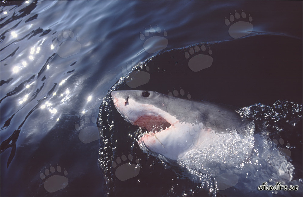 Descrizione: Il maestoso Squalo Bianco, conosciuto anche come Grande Squalo Bianco o Carcharodon carcharias, affaccia la testa dall'acqua al largo della costa di Gansbaai, in Sudafrica. Con la sua imponente presenza e i suoi denti affilati, lo Squalo Bianco è un temuto cacciatore dei mari. Scopri di più su questo affascinante animale e il suo ruolo nell'ecosistema marino.