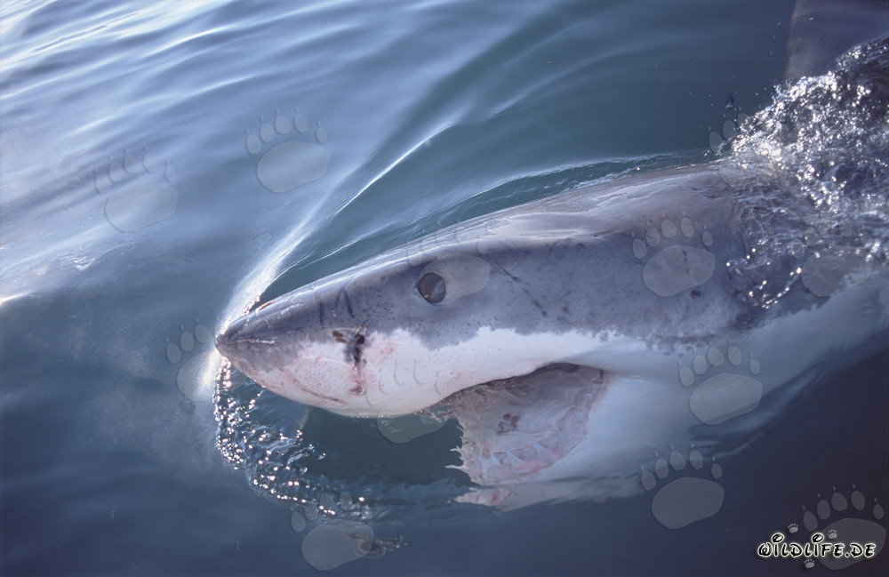 Uno maestoso squalo bianco (Carcharodon carcharias) in superficie del mare (00001618)