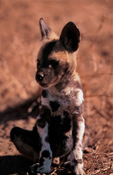 Il nome scientifico Lycaon pictus del Cane Selvatico Africano significa 'Lupo Dipinto' e si riferisce alle macchie dei cani. I cuccioli nascono neri con macchie bianche irregolari. I toni giallo-marrone compaiono solo in seguito. Il Cane Selvatico Africano è attualmente il più raro dei grandi predatori in Africa. Gli adulti raggiungono un'altezza al garrese di 60-70 centimetri e un peso di 15-30 chilogrammi. Questi animali - che vivono in branchi - abitano le savane alberate dell'Africa a sud del Sahara. I Cani Selvatici Africani sono fortemente minacciati di estinzione e si trovano principalmente in grandi parchi naturali. Lycaon pictus