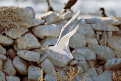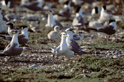 Scopri il maestoso mondo delle terne comuni (Sterna bergii), presenti tutto l'anno nelle isole idilliache davanti alla costa sudafricana. Questi imponenti uccelli marini nidificano in grandi colonie, spesso insieme ai gabbiani Hartlaub, come si può vedere sulla pittoresca Isola Dyer. Con circa 6000 coppie riproduttive, le terne comuni svolgono un ruolo cruciale nell'ecosistema di questa regione. La stagione riproduttiva al Capo occidentale si estende da febbraio a marzo, con i giovani che diventano fanciulli tra aprile e maggio. Durante questo periodo, le sarde sono una parte vitale della loro dieta, che cacciano lontano nell'oceano aperto. Proteggere queste specie minacciate è di grande importanza, come confermato dalla Lista Rossa dell'IUCN. Questi uccelli unici sono un punto forte per i fotografi della natura e gli appassionati di fauna selvatica che apprezzano i loro modelli di volo dinamici e la vita armoniosa nelle colonie.
