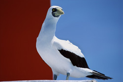 Esplora l'habitat affascinante del Booby Mascherato (Sula dactylatra) nelle acque tropicali di Midway Atoll/Hawaii, simbolo di resilienza e bellezza naturale.